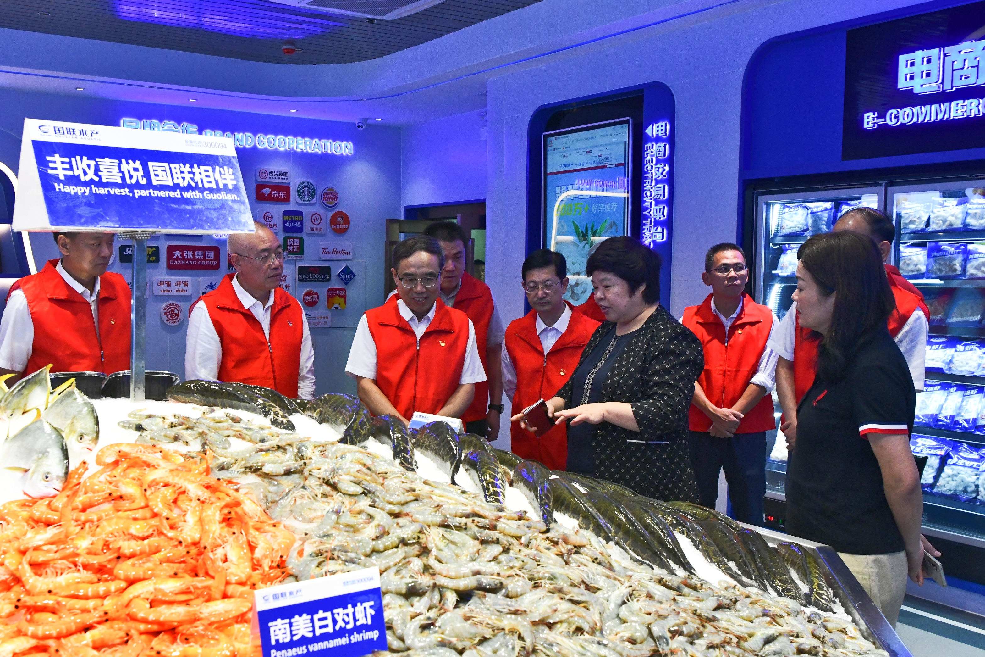 国家统计局统计设计管理司司长徐荣华,广东省统计局党组书记、局长杨新洪,湛江市委常委、常务副市长黄明忠,吴川市委副书记、市长刘伟,湛江市有关部门领导陪同,国联水产集团行政总裁吴丽青陪同接待。