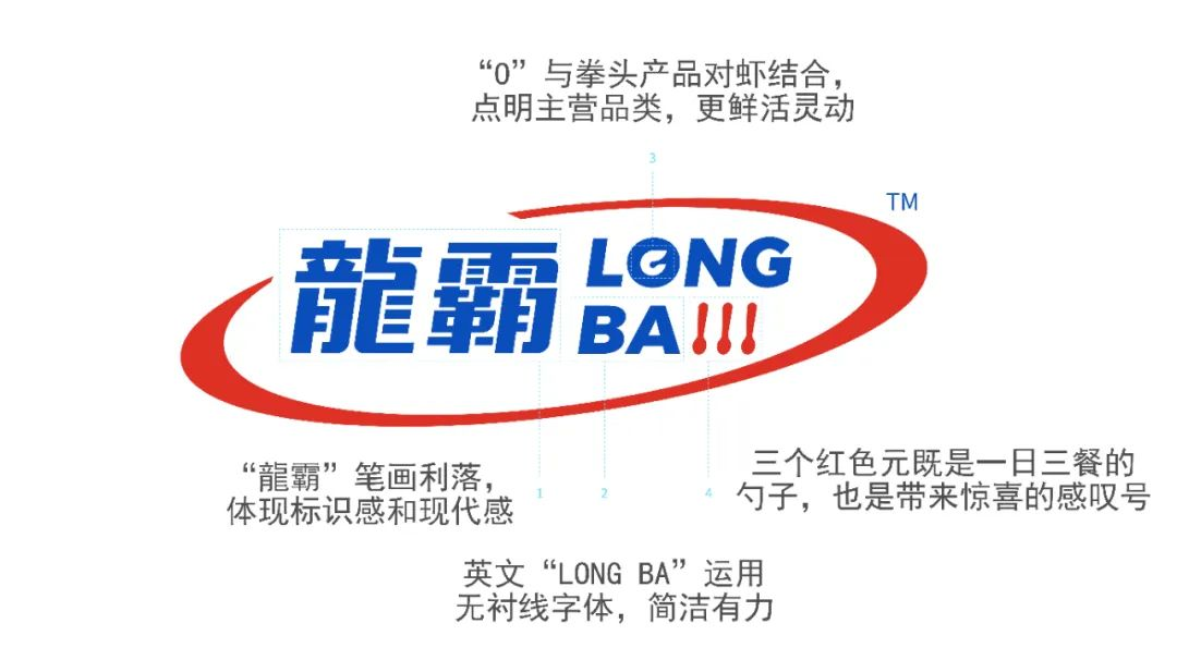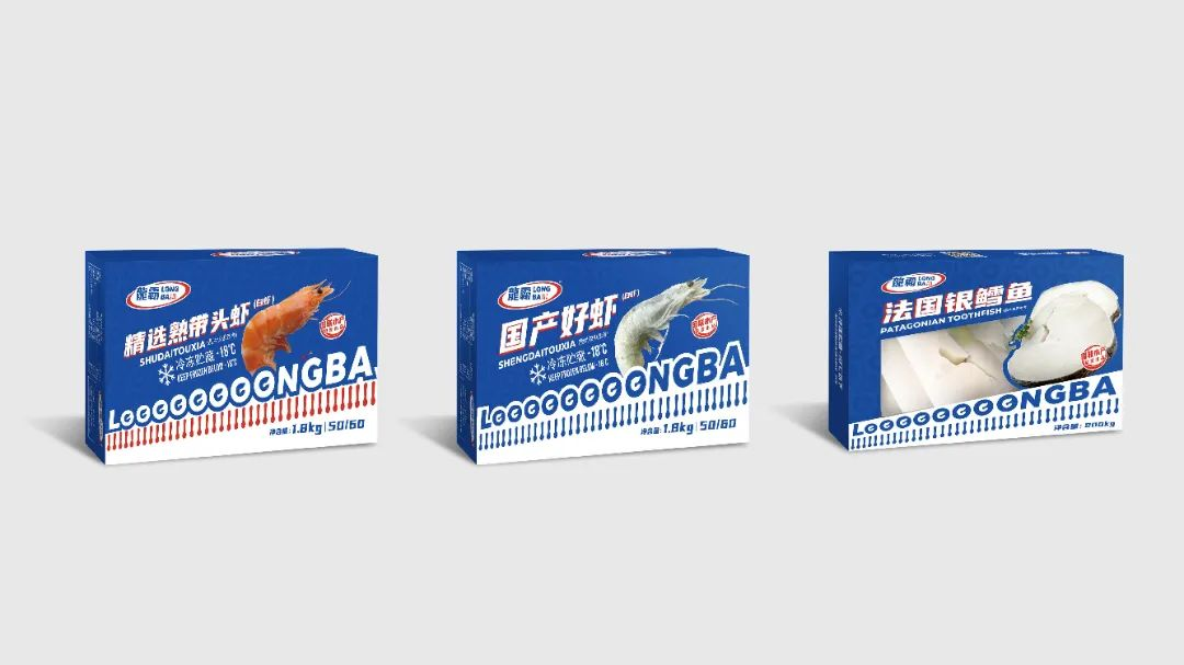 新LOGO色调上采用红蓝结合,蓝色代表海洋,让人轻松联想到龙霸专注经营“水产食材”这一领域,红色为品牌增加鲜活力量,在视觉上与传统水产品牌明显区分开来。