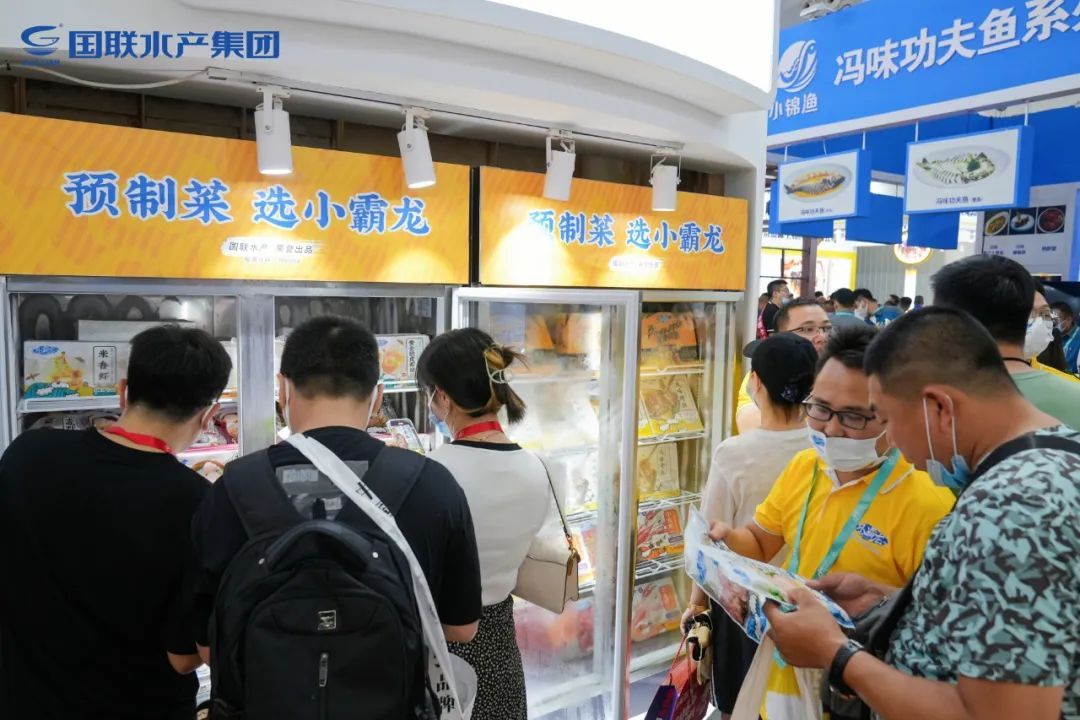 展会上,国联水产集团展位在延续升级独具一格的“国联蓝”的基础上,巧妙融入龙霸、小霸龙两大品牌视觉设计,以多重消费场景为灵感,聚焦八大超人气预制菜,并特设品牌专区陈列,搭建灵活时尚的活动走线,让所有前来的参观者都能感受到国联水产集团在万亿级预制菜赛道的“新食力”和领军未来的决心!展位前人头攒动,赞美、咨询声不绝于耳。